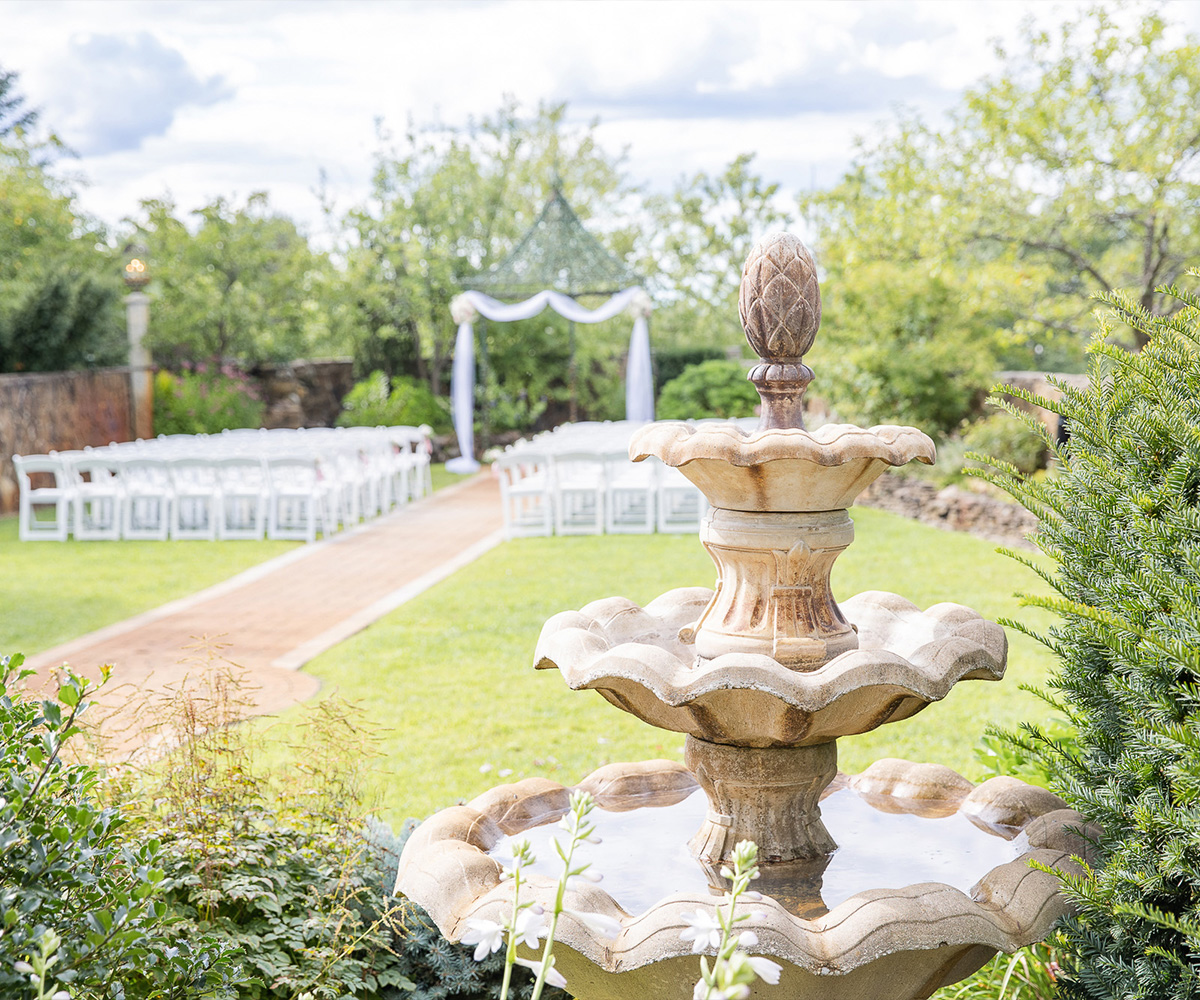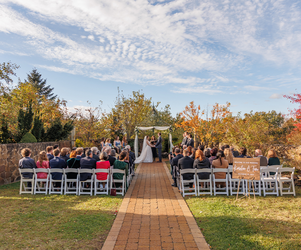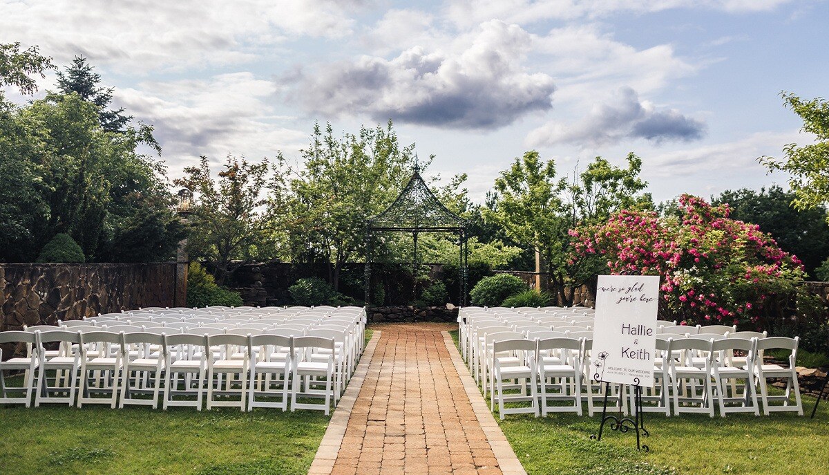 Celebrate your union in the garden ceremony site or indoors in the climate-controlled grand hall. The romantic garden ceremony site features lovely stonework, a paved aisle, and a wrought-iron arbor, all surrounded by trees and lush foliage for a naturally stunning setting.