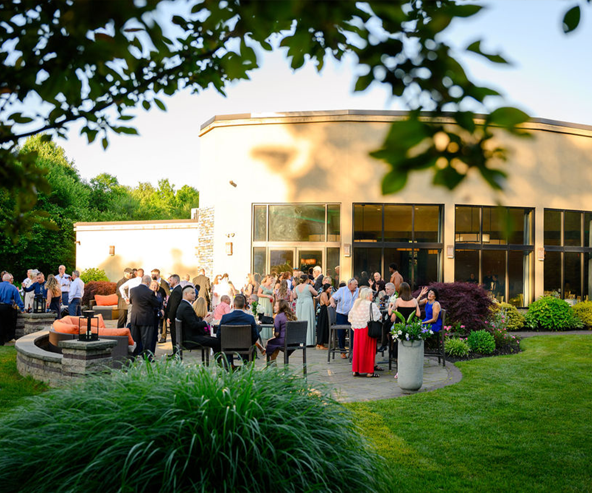 The foyer leads you to the serene ceremony lawn, where you can choose between a charming whitewashed pergola and a sleek modern accent arch for your vows. Surrounded by well-kept grounds and charming woodland, this all-season ceremony garden ensures a secluded and intimate setting.